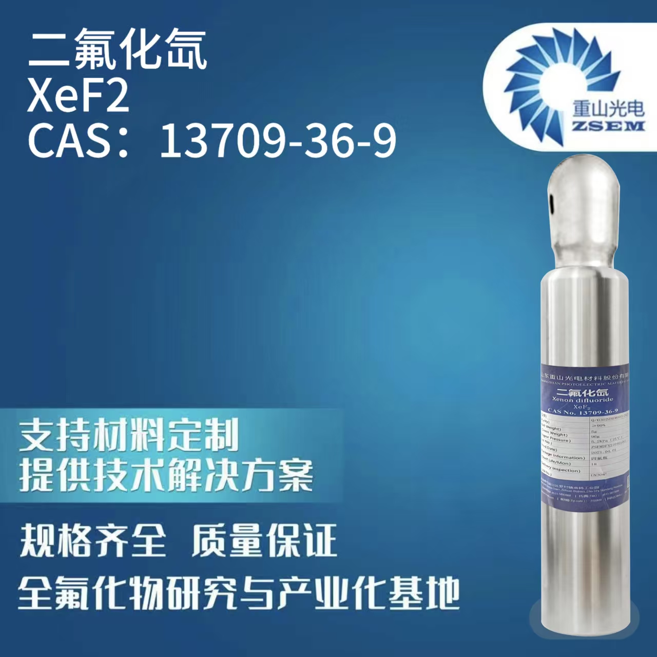 二氟化氙(XeF2),又稱二氟代氙,分子量為169.30,在電子工業(yè)中,XeF2常被用作硅的蝕刻氣體,由于XeF2和硅的化學(xué)反應(yīng)是自發(fā)反應(yīng),XeF2對(duì)硅的腐蝕工藝具有非常高的選擇性,在XeF2對(duì)硅進(jìn)行腐蝕過(guò)程中,XeF2氣體通過(guò)自由擴(kuò)散到硅襯底表面,并與最外層硅原子發(fā)生化學(xué)反應(yīng)生成氣態(tài)Xe和氣態(tài)SiF4,從而實(shí)現(xiàn)對(duì)硅的腐蝕。